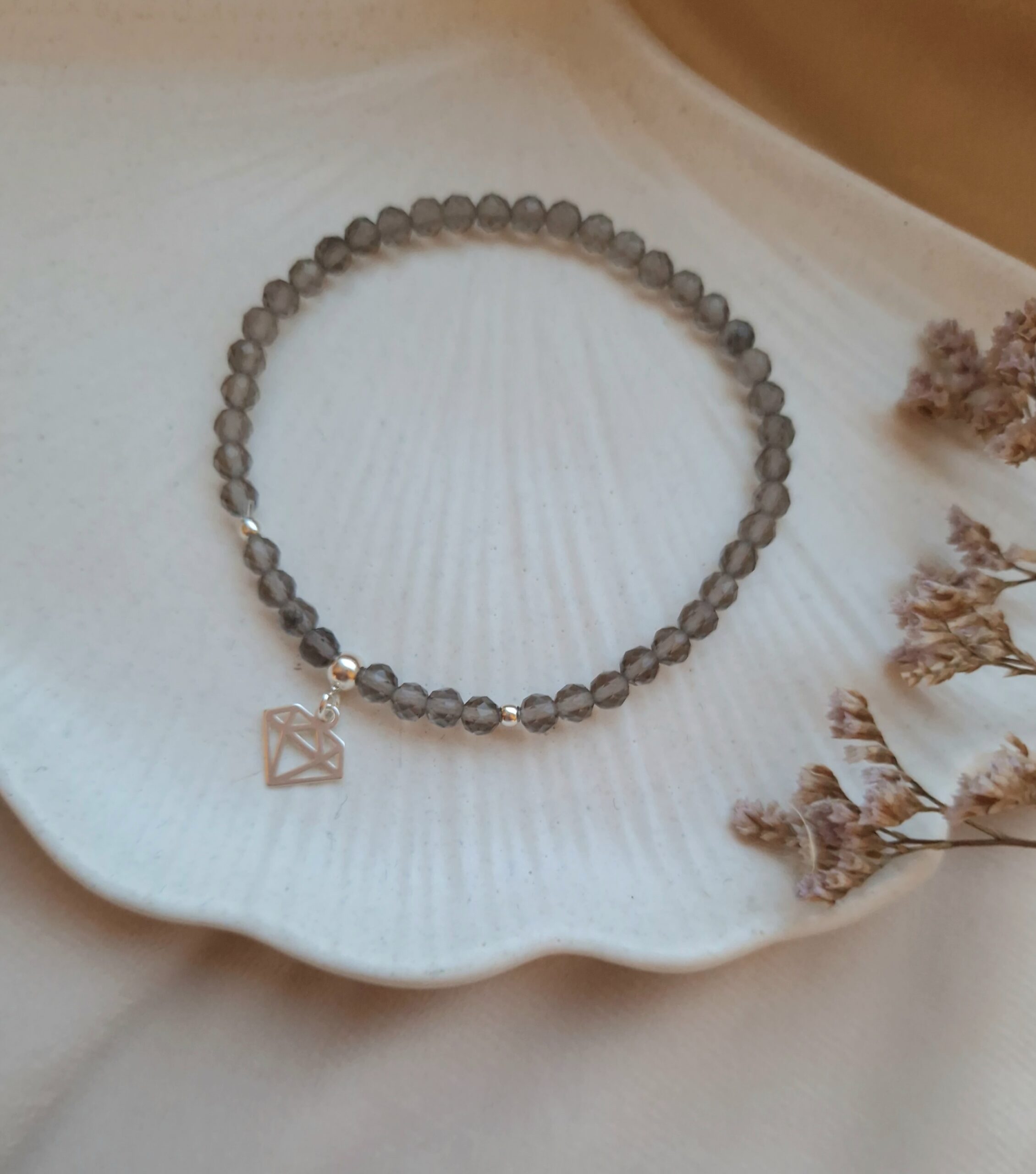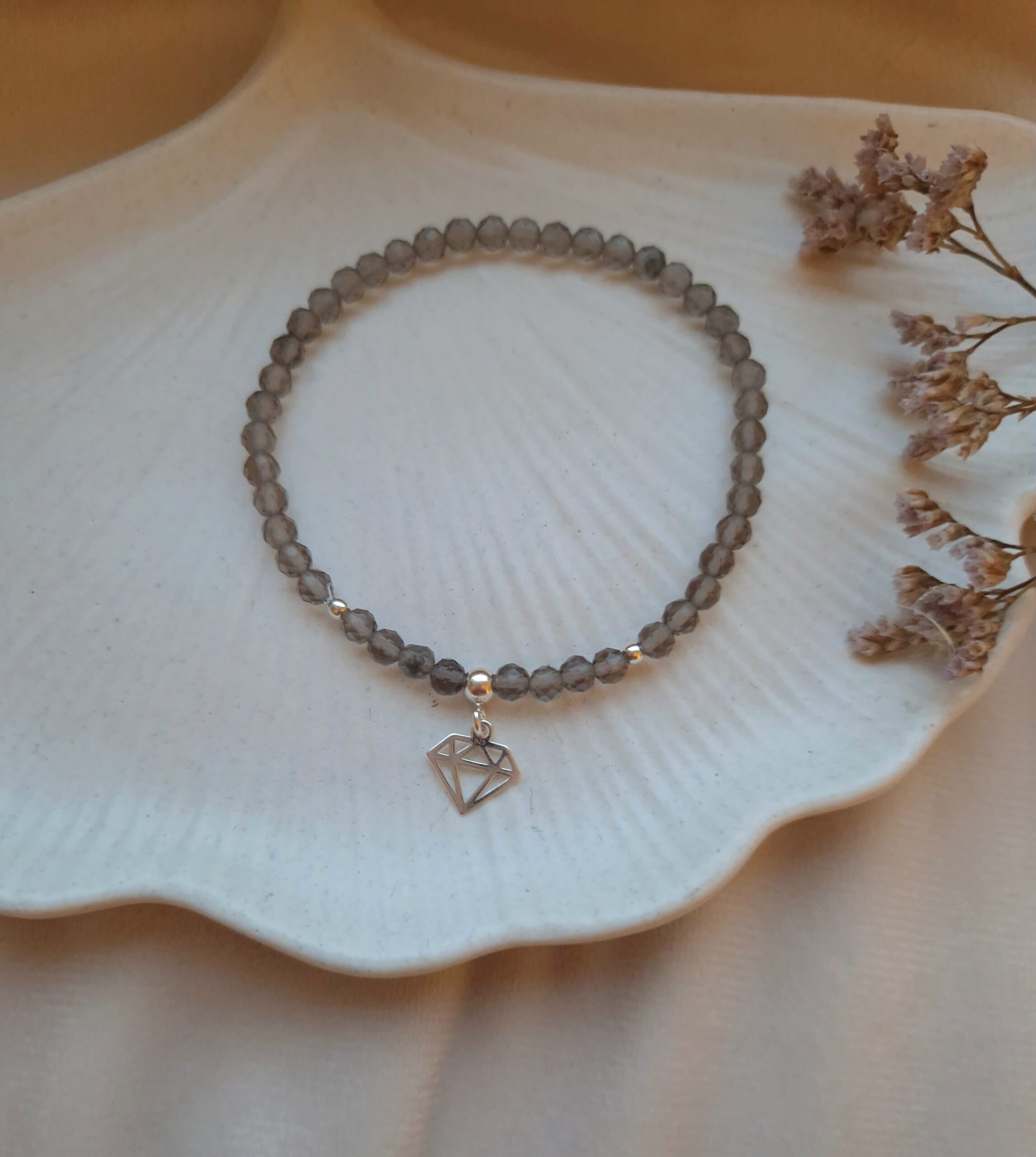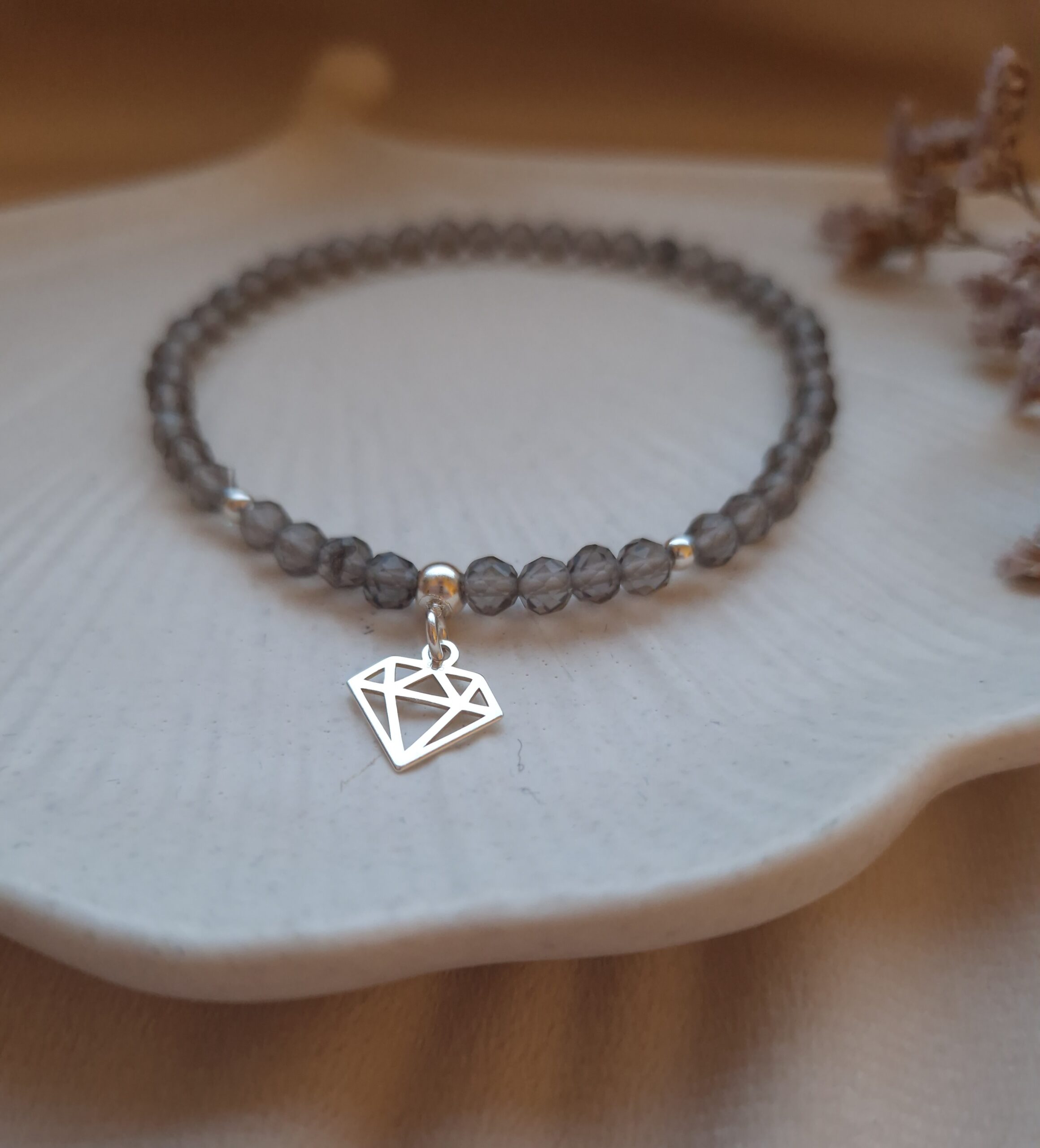 Bransoletka elastyczna. Zawieszka w kształcie Diamentu wykonana jest ze srebra