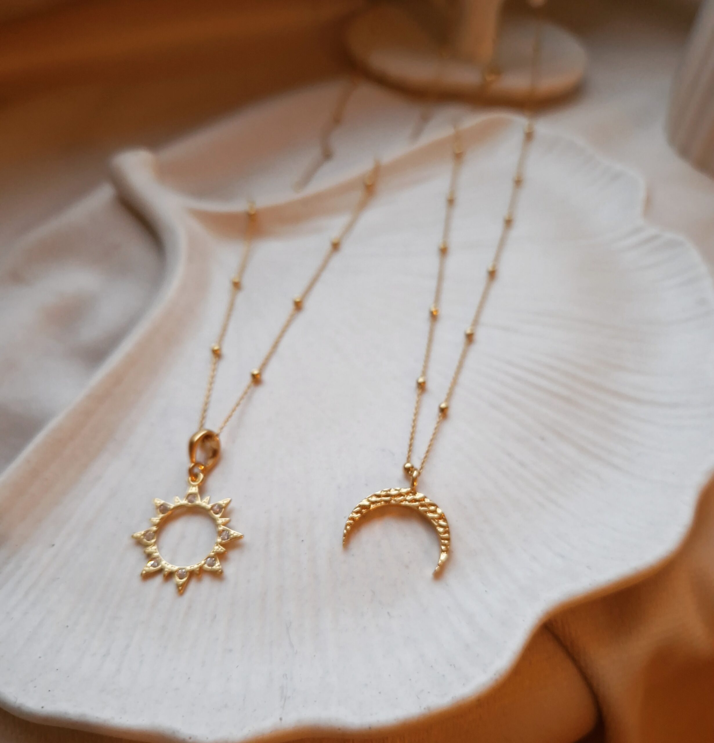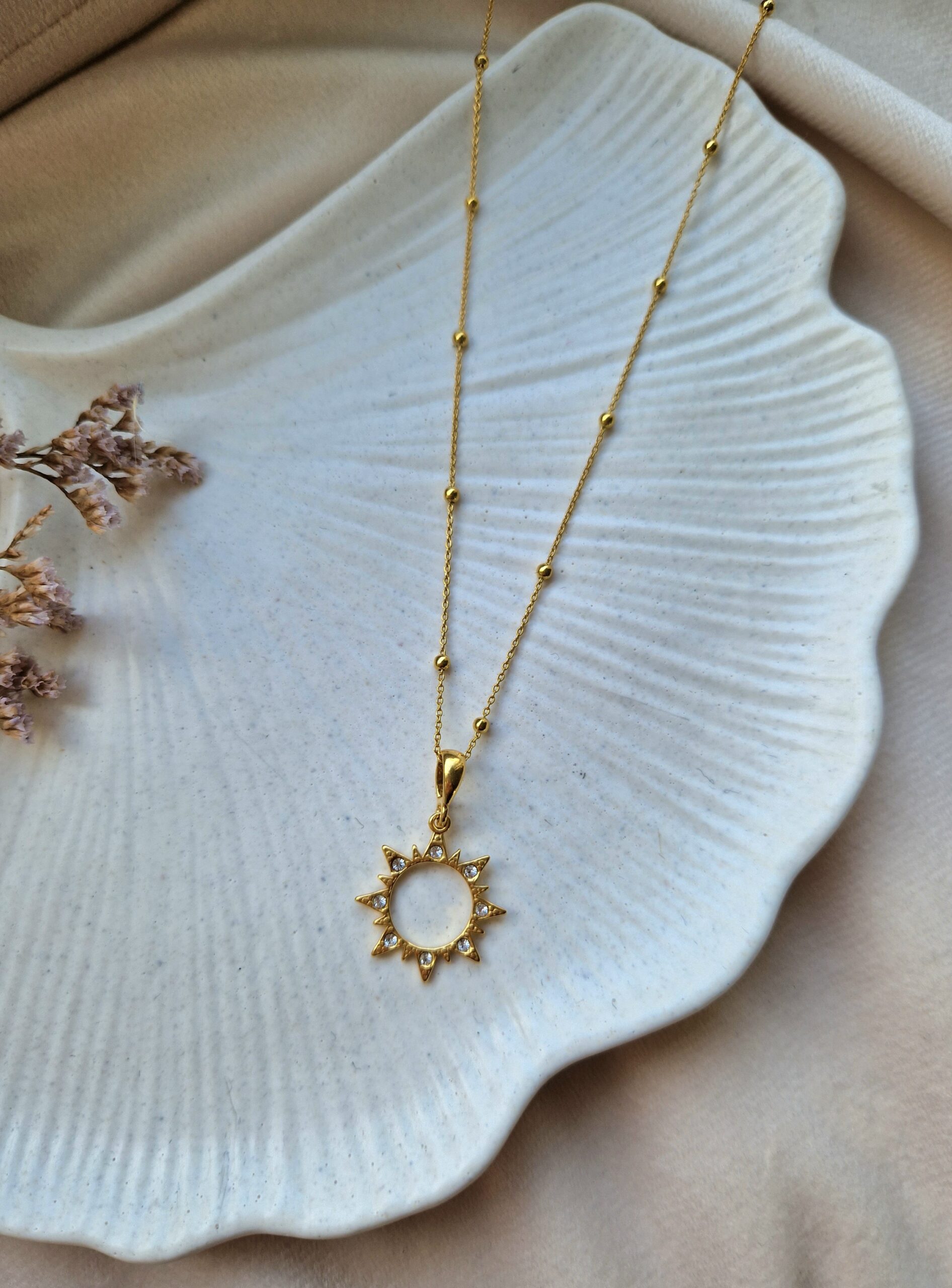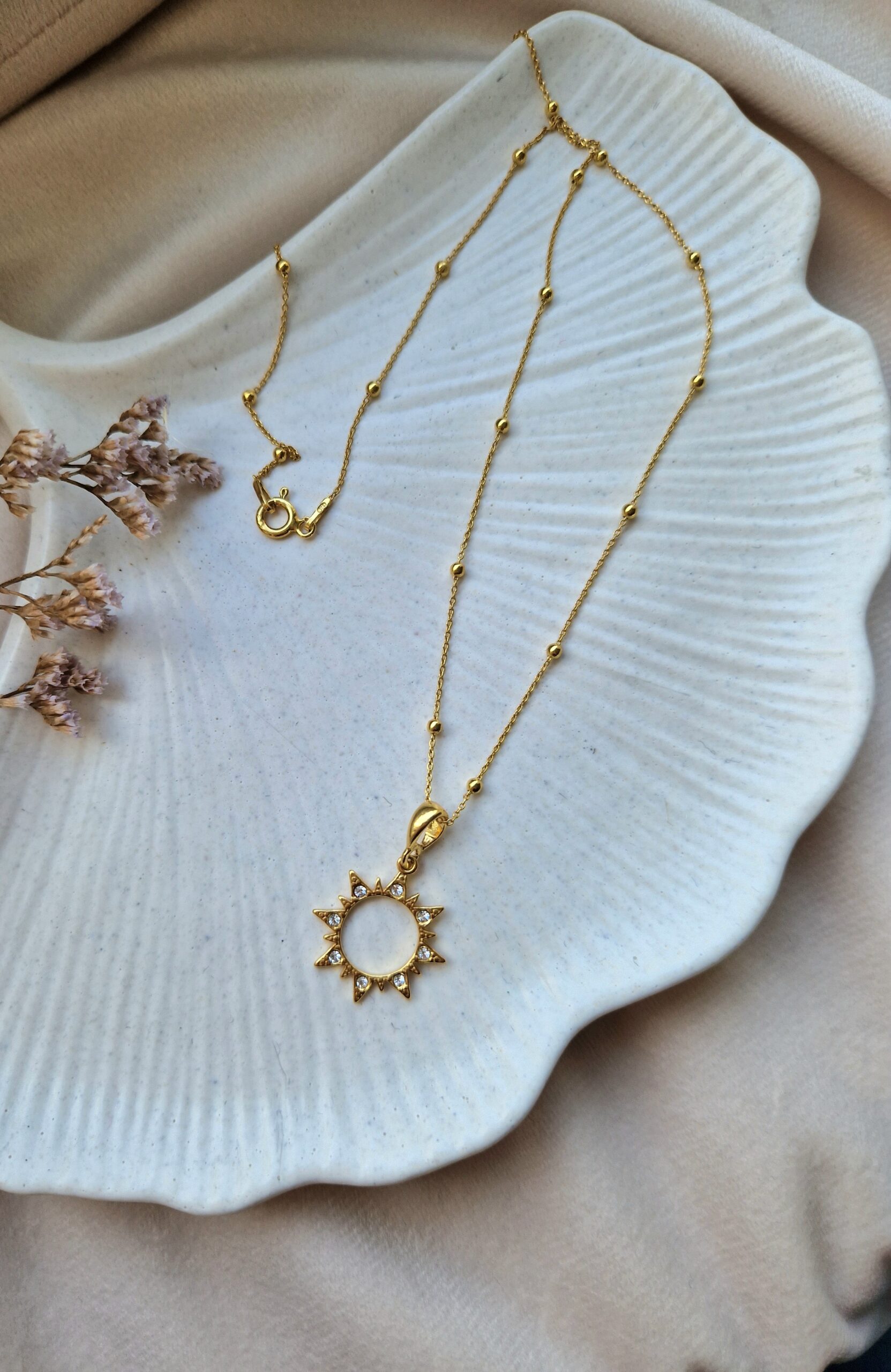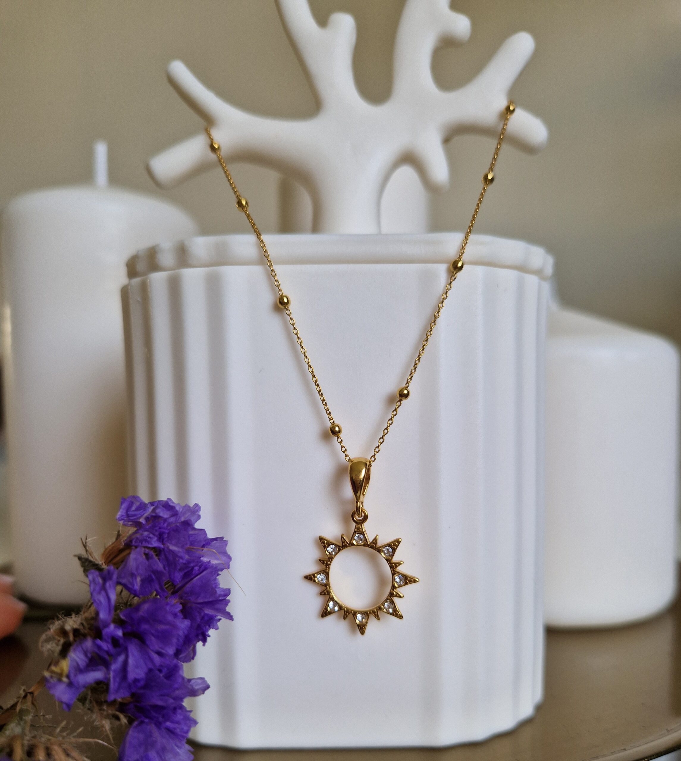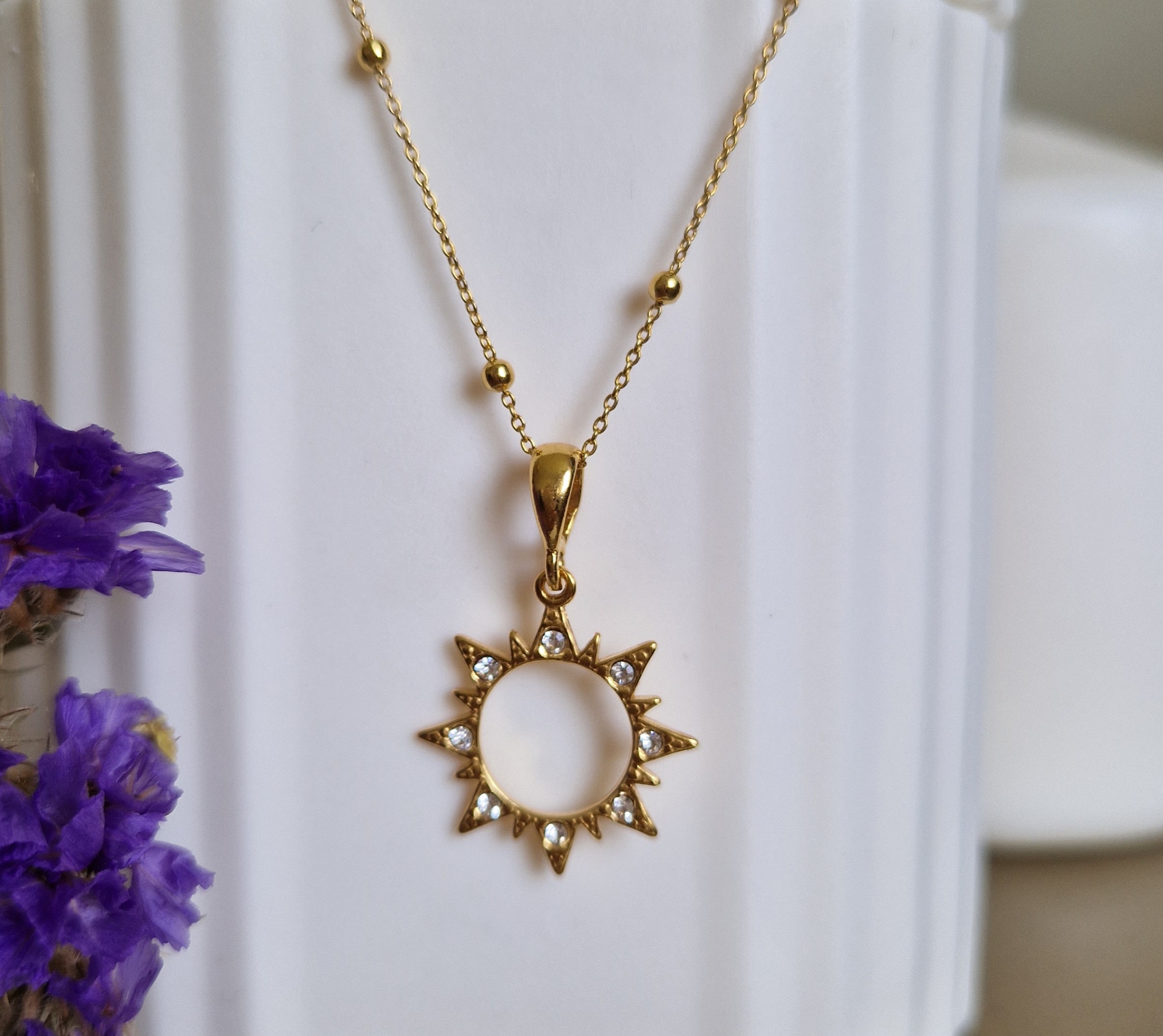 Kobiecy, dodający radości oraz słonecznej energii łańcuszek z motywem Słońca.