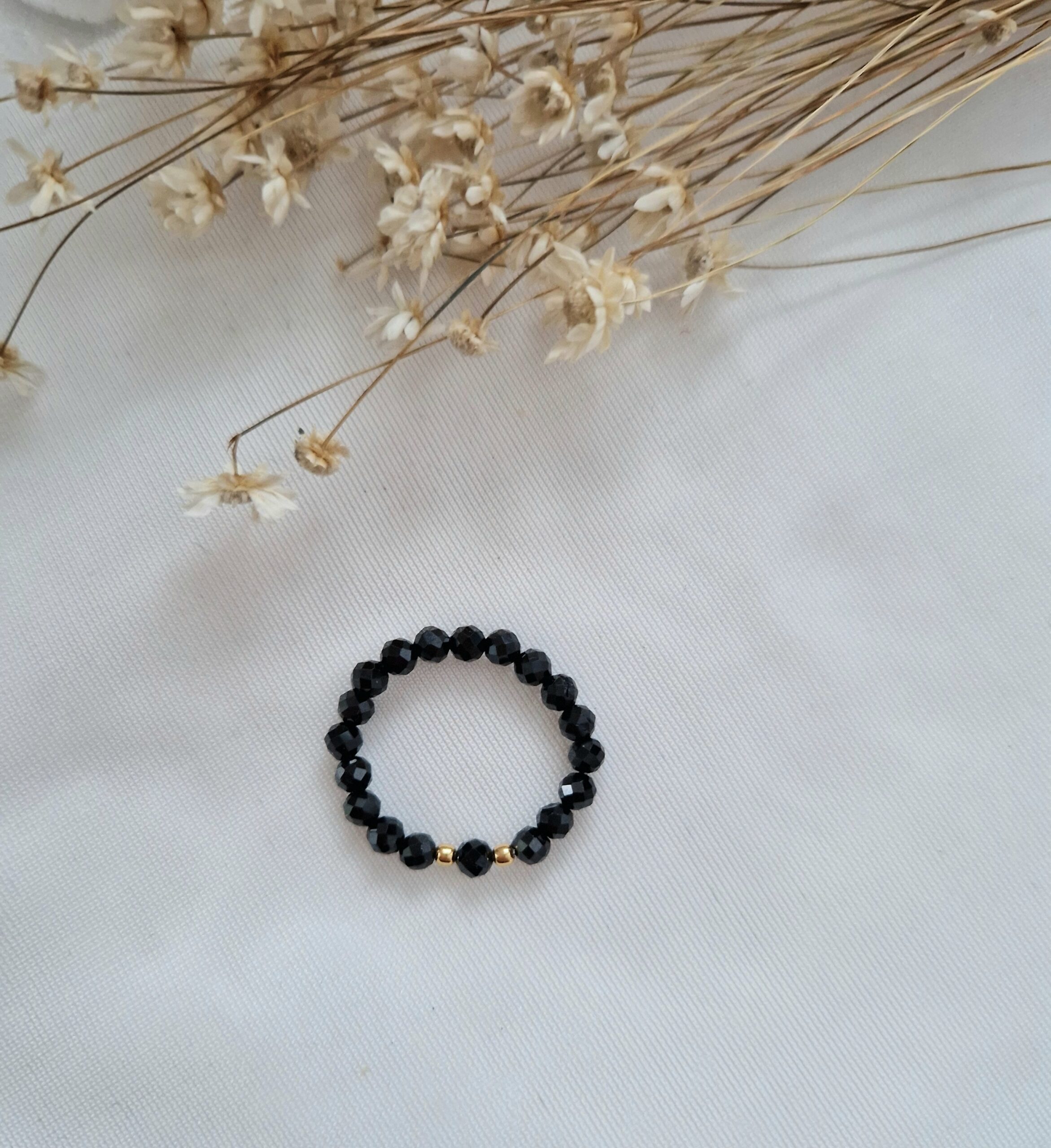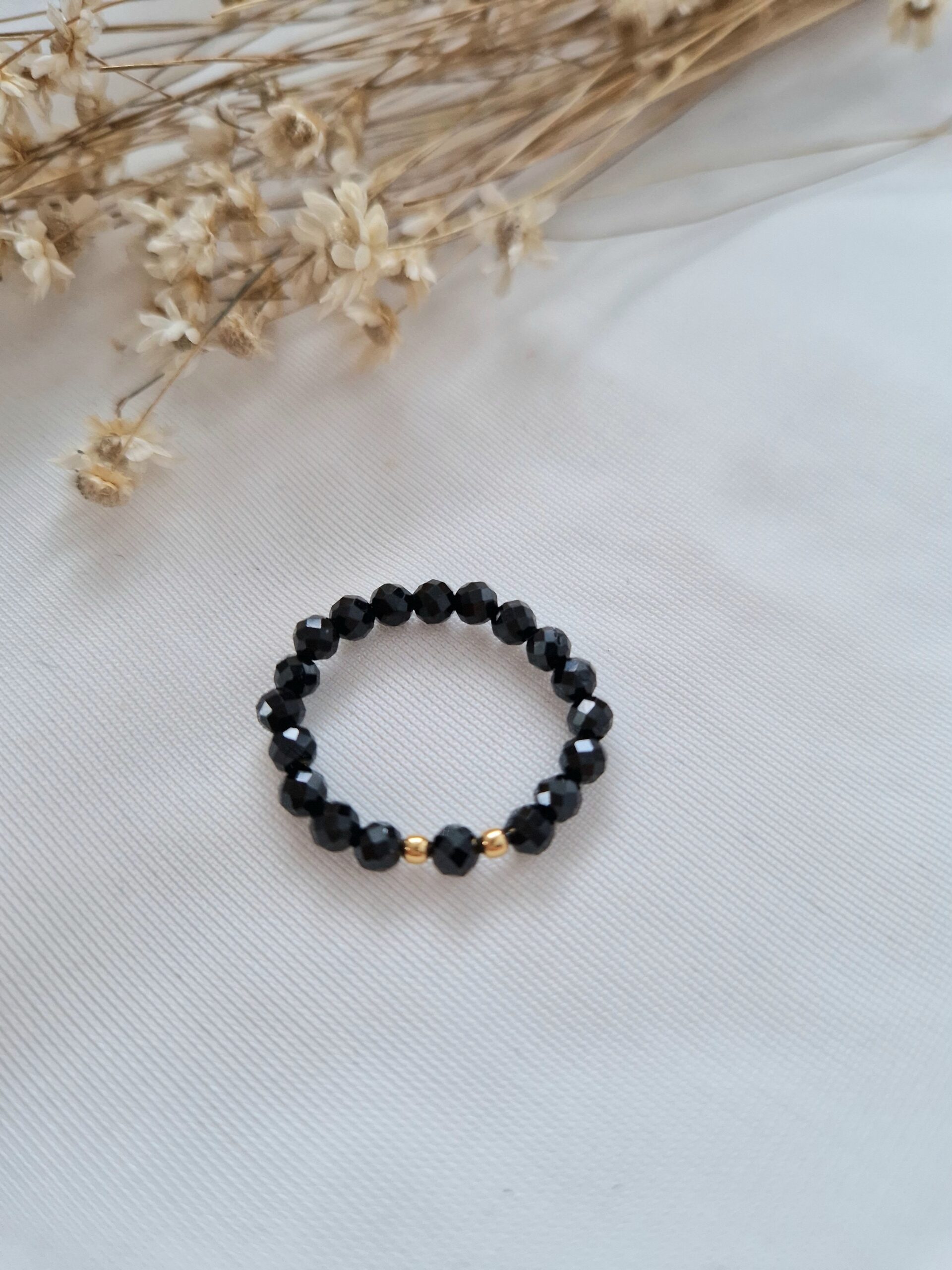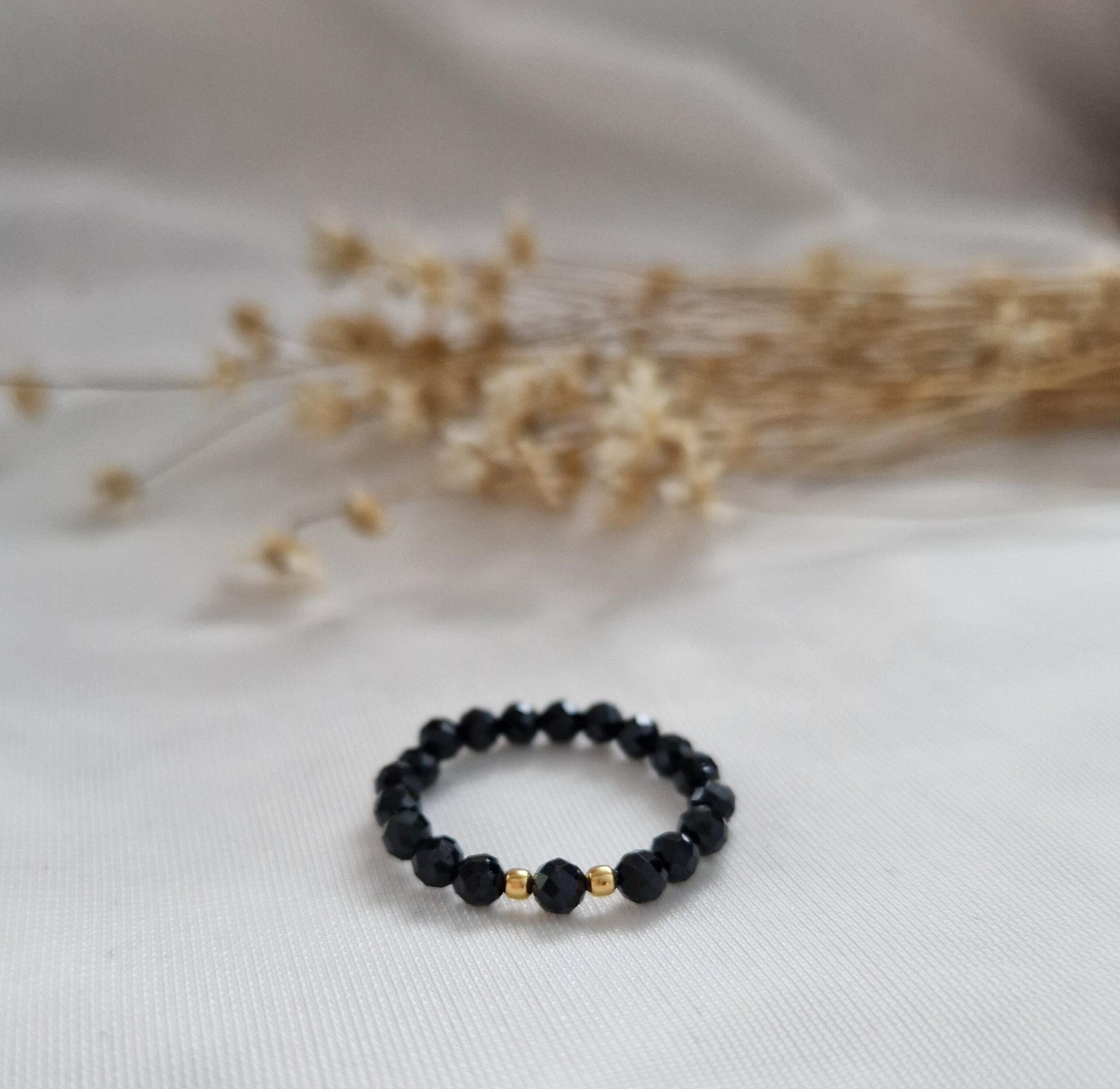 Elastyczny pierścionek wykonany z fasetowanych naturalnych kamieni Spinel.